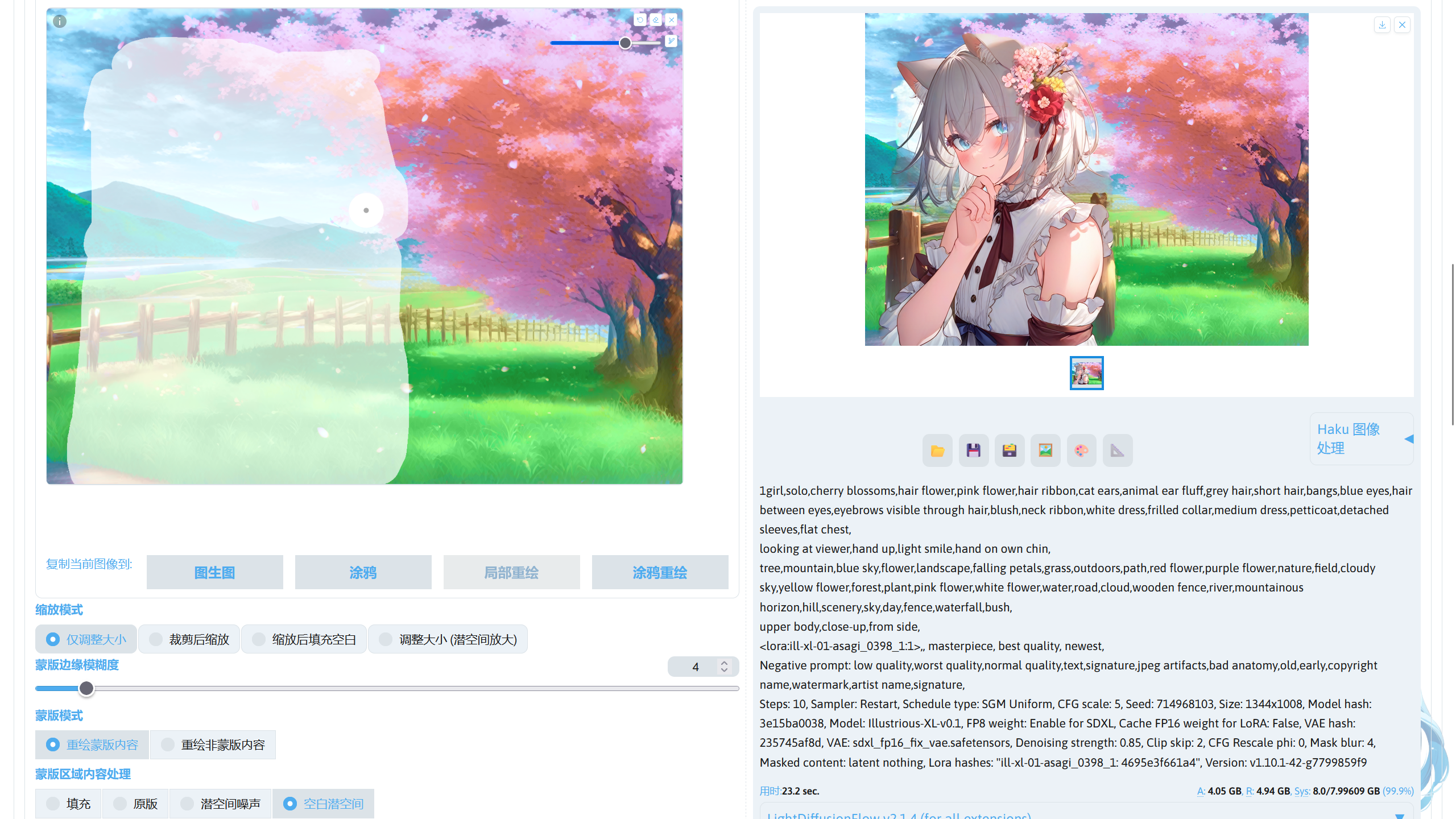 提示词中的画风 LoRA:ill-xl-01-asagi_0398_1(Civitai),模型放在stable-diffusion-webui/models/Lora。